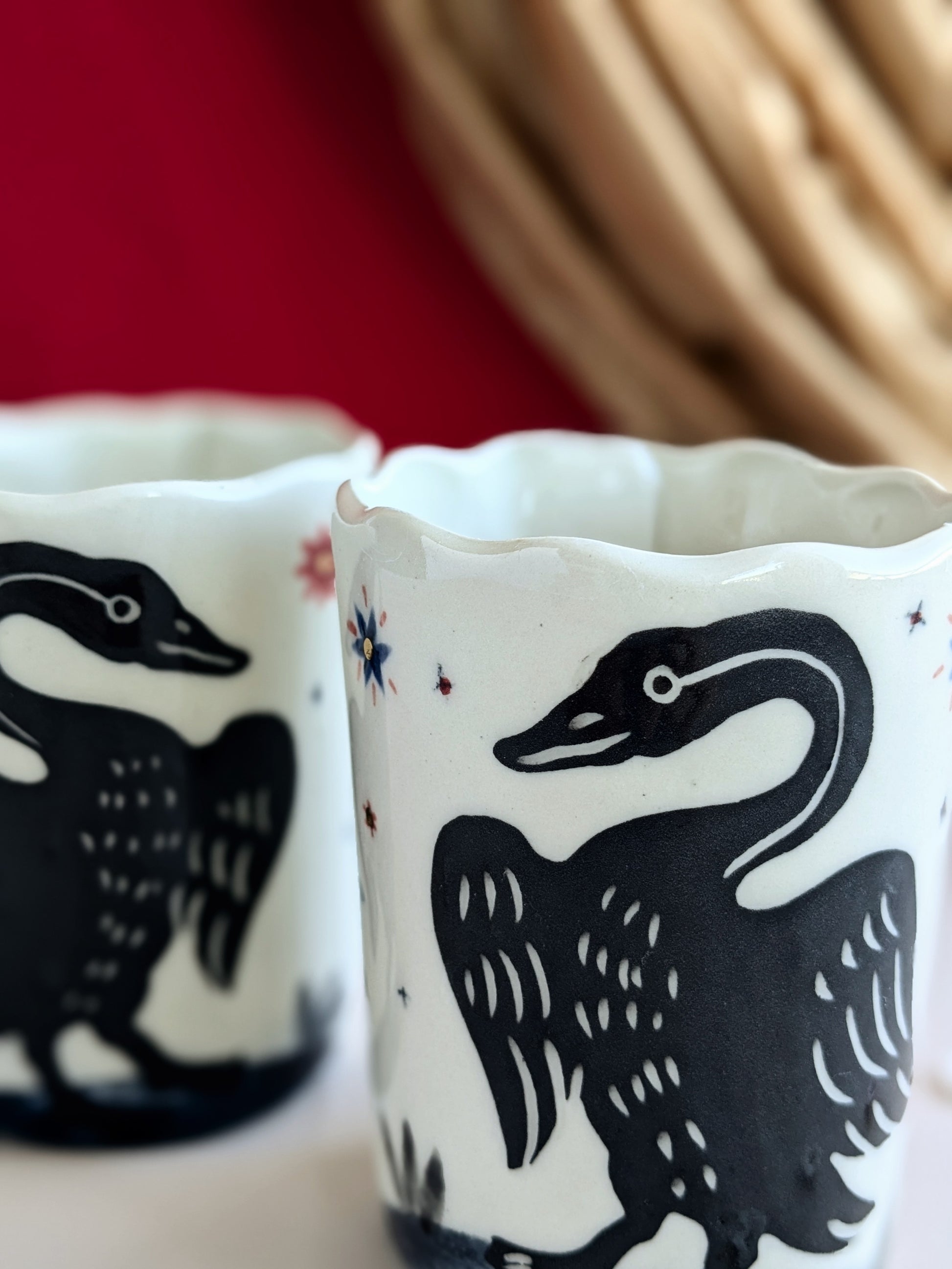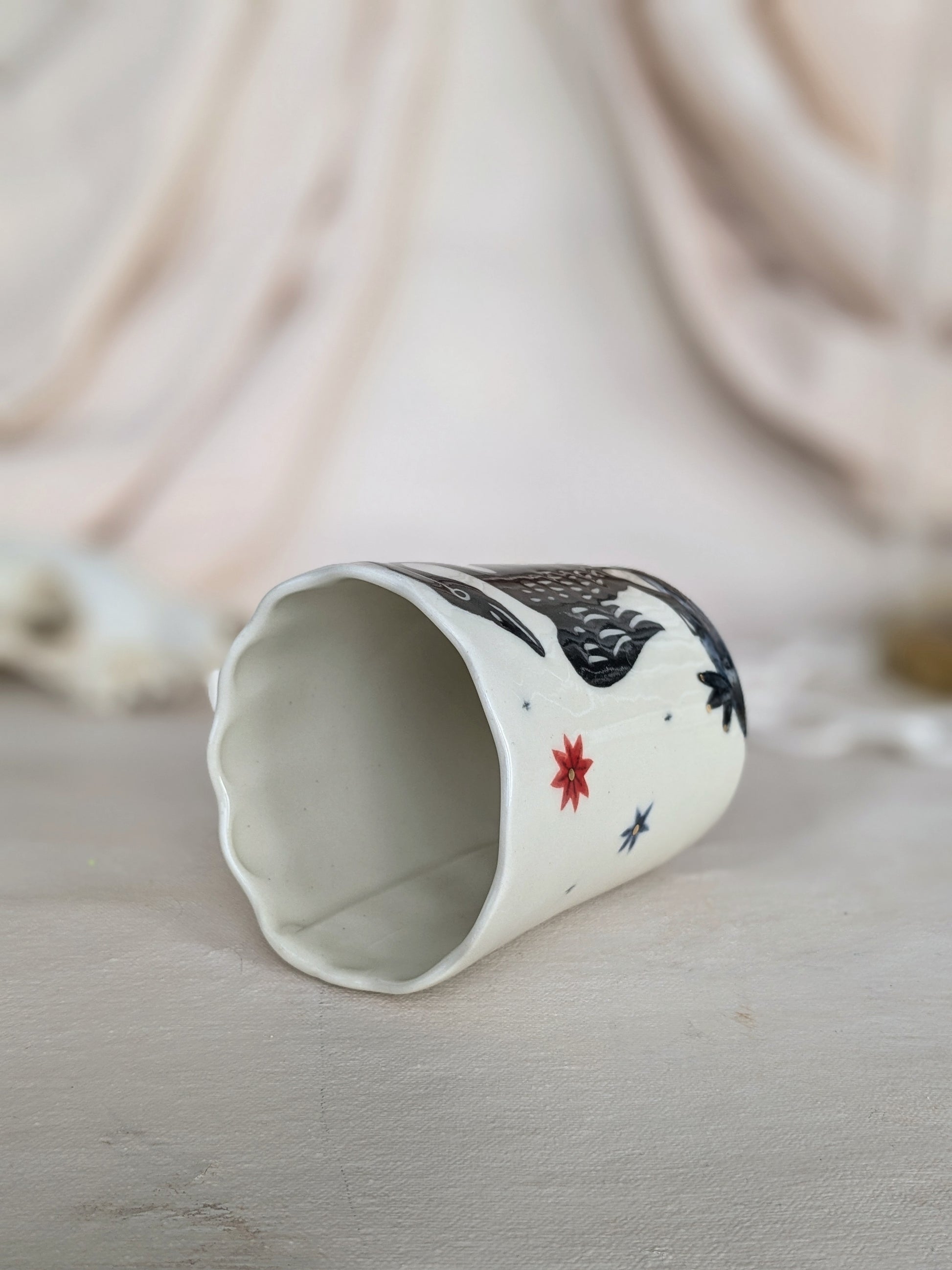 Large hand-made stoneware glass, decorated with underglazes, engobes and oxides and enhanced with real 22 carat gold lustre. Holds 300 ml.