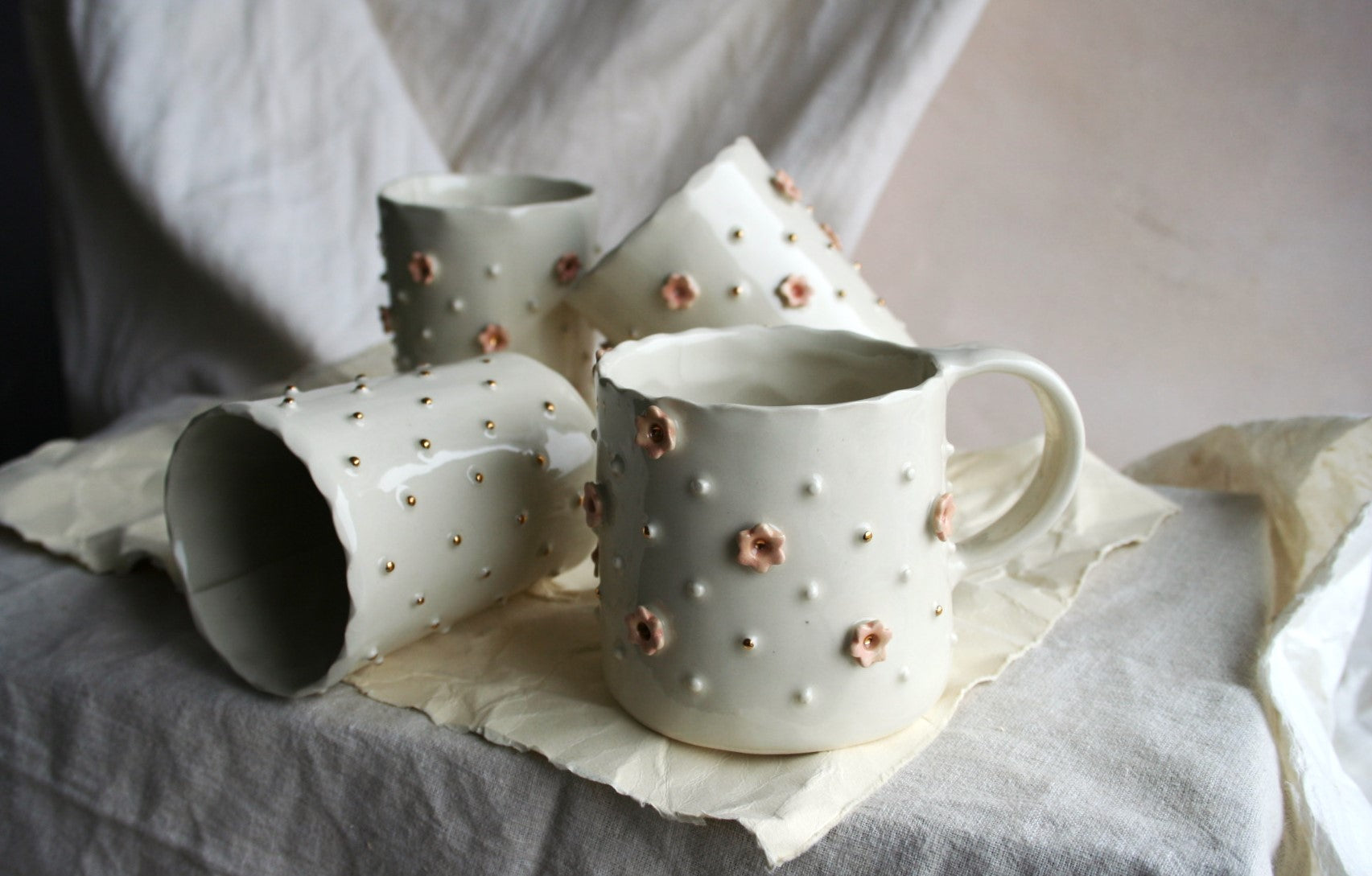 Large hand-made stoneware glass, decorated with underglazes, engobes and oxides and enhanced with real 22 carat gold lustre. Holds 300 ml.