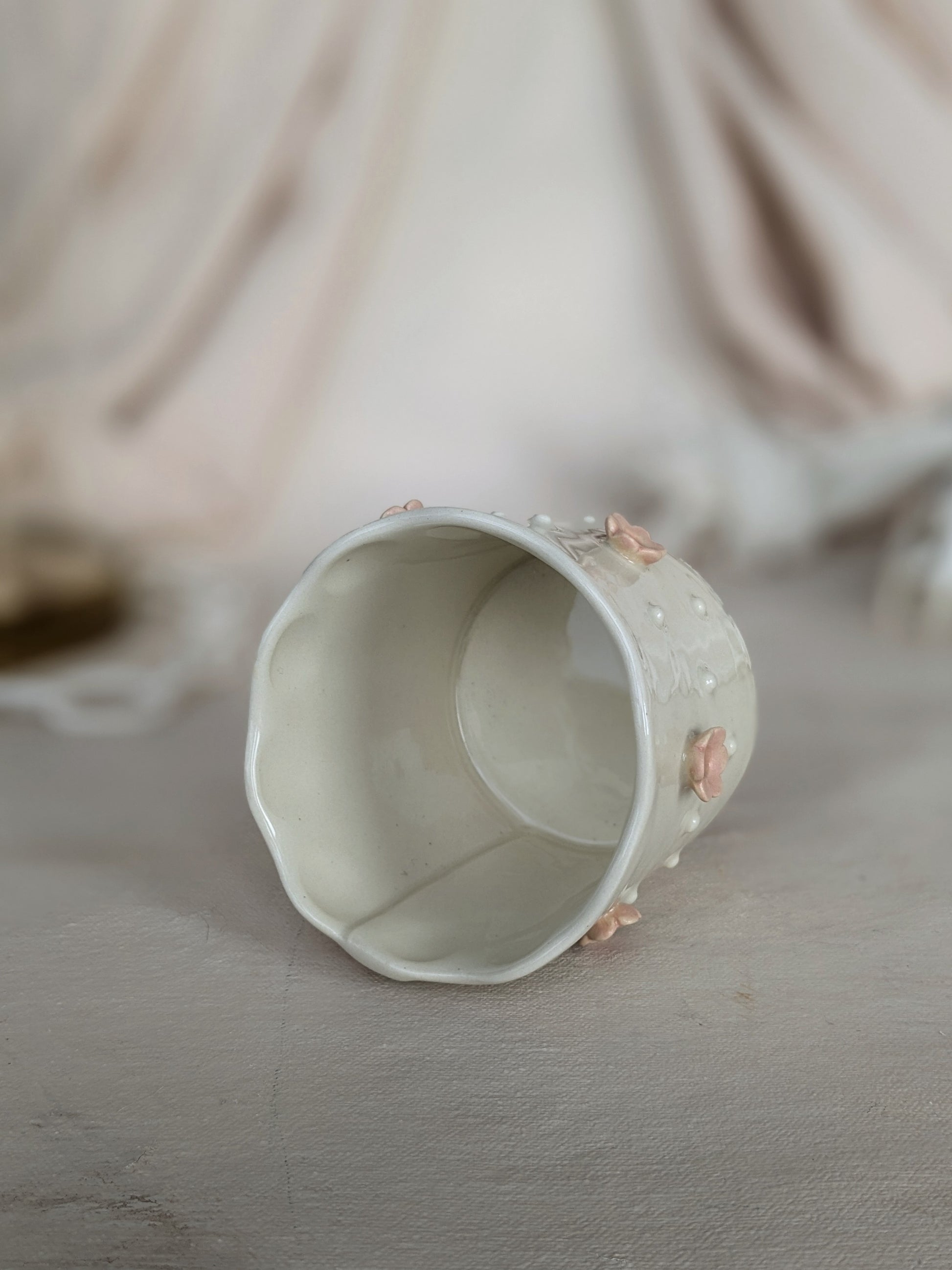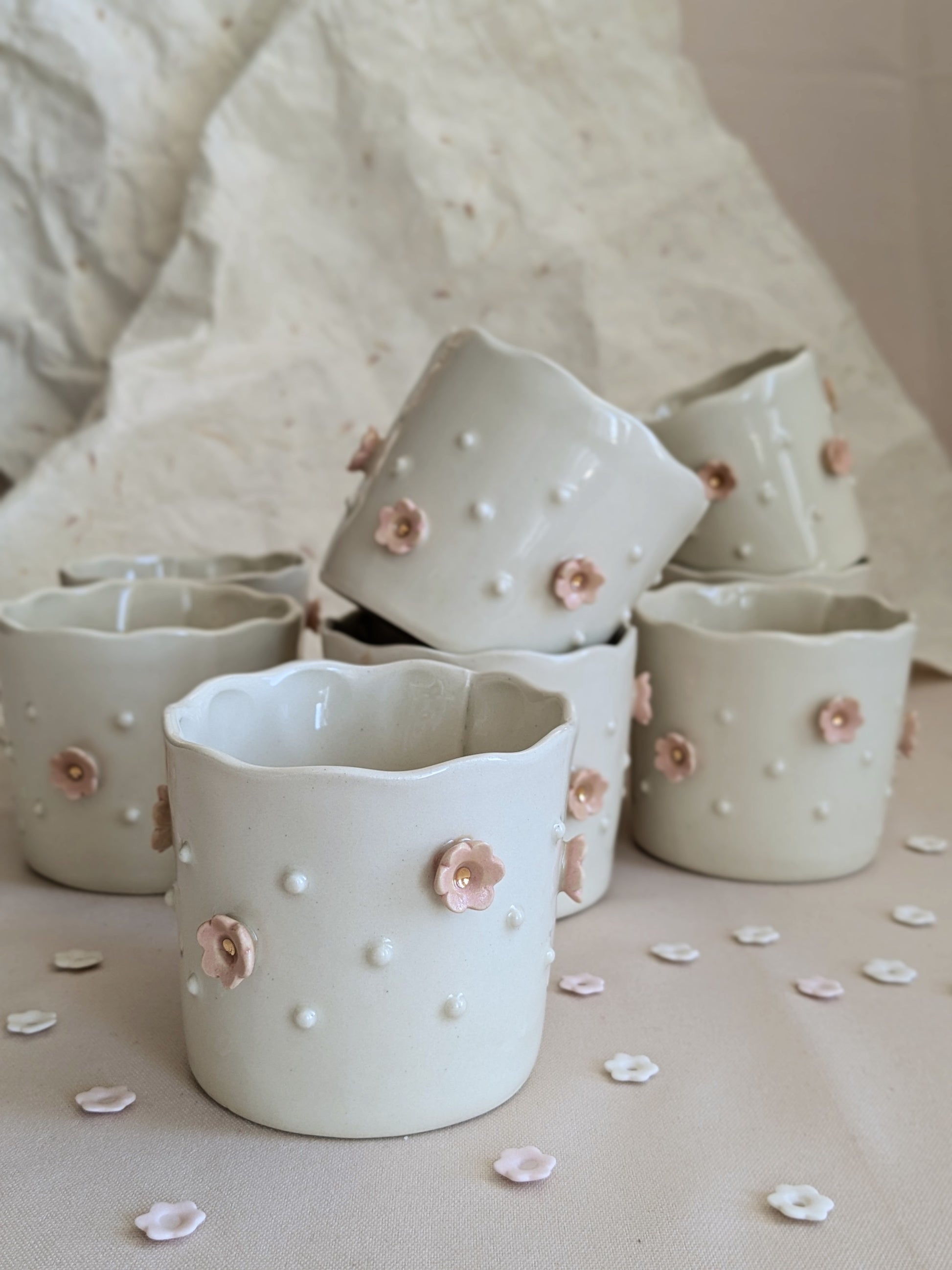 Small hand-made stoneware glass, decorated with underglazes, engobes and oxides and enhanced with real 22 carat gold lustre. Holds 220 ml.